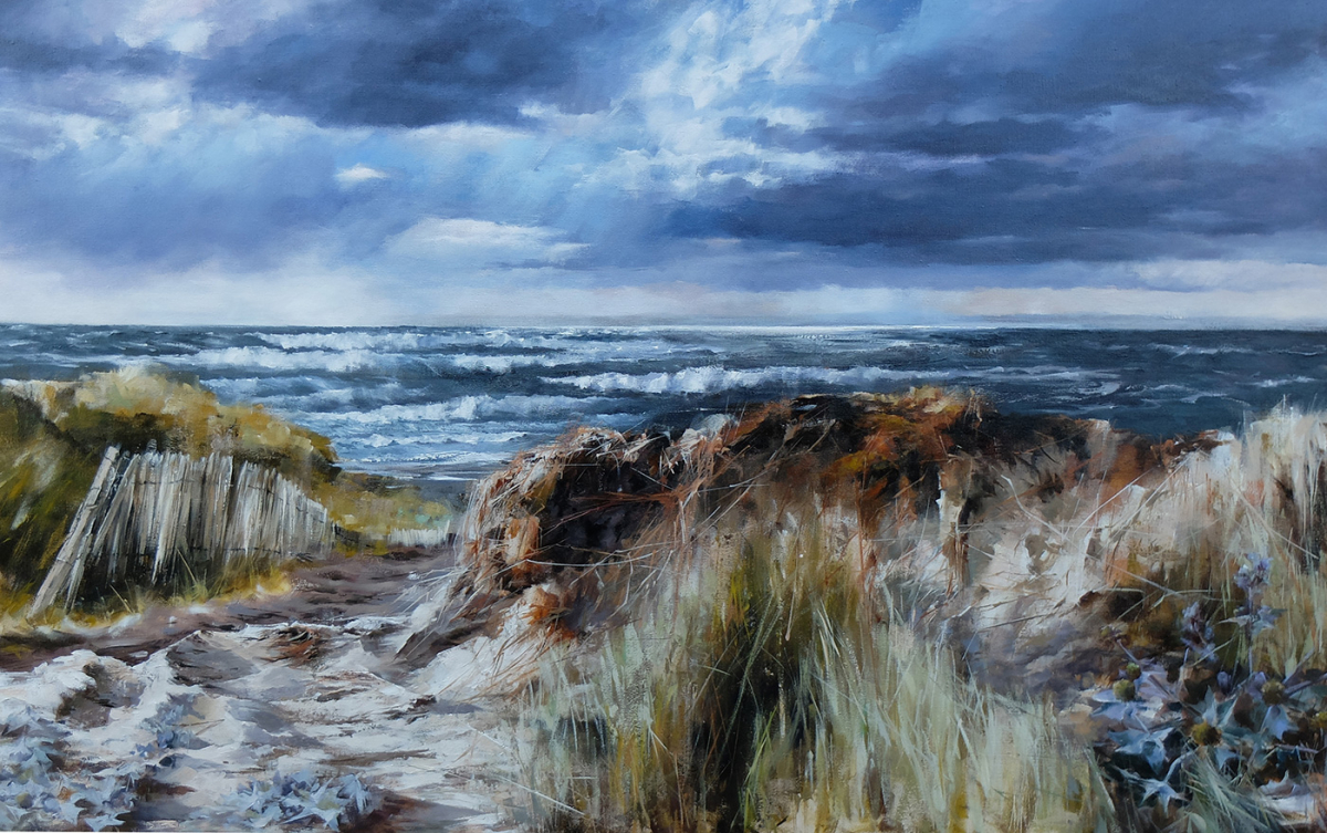 Les chardons sur la dune, littoral de la Manche - Peinture à l'huile © Valérie Le Merrer