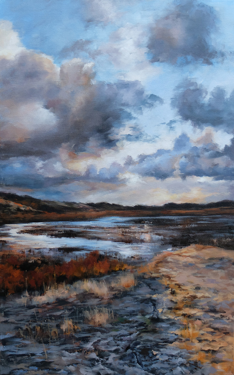 Balade dans les havres de la Manche et pause sur un chemin de dune - Peinture à l'huile sur toile © Valérie Le Merrer