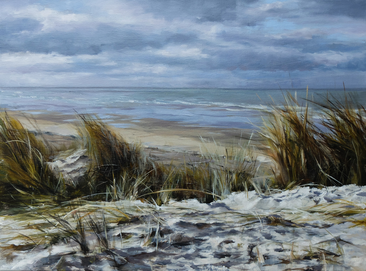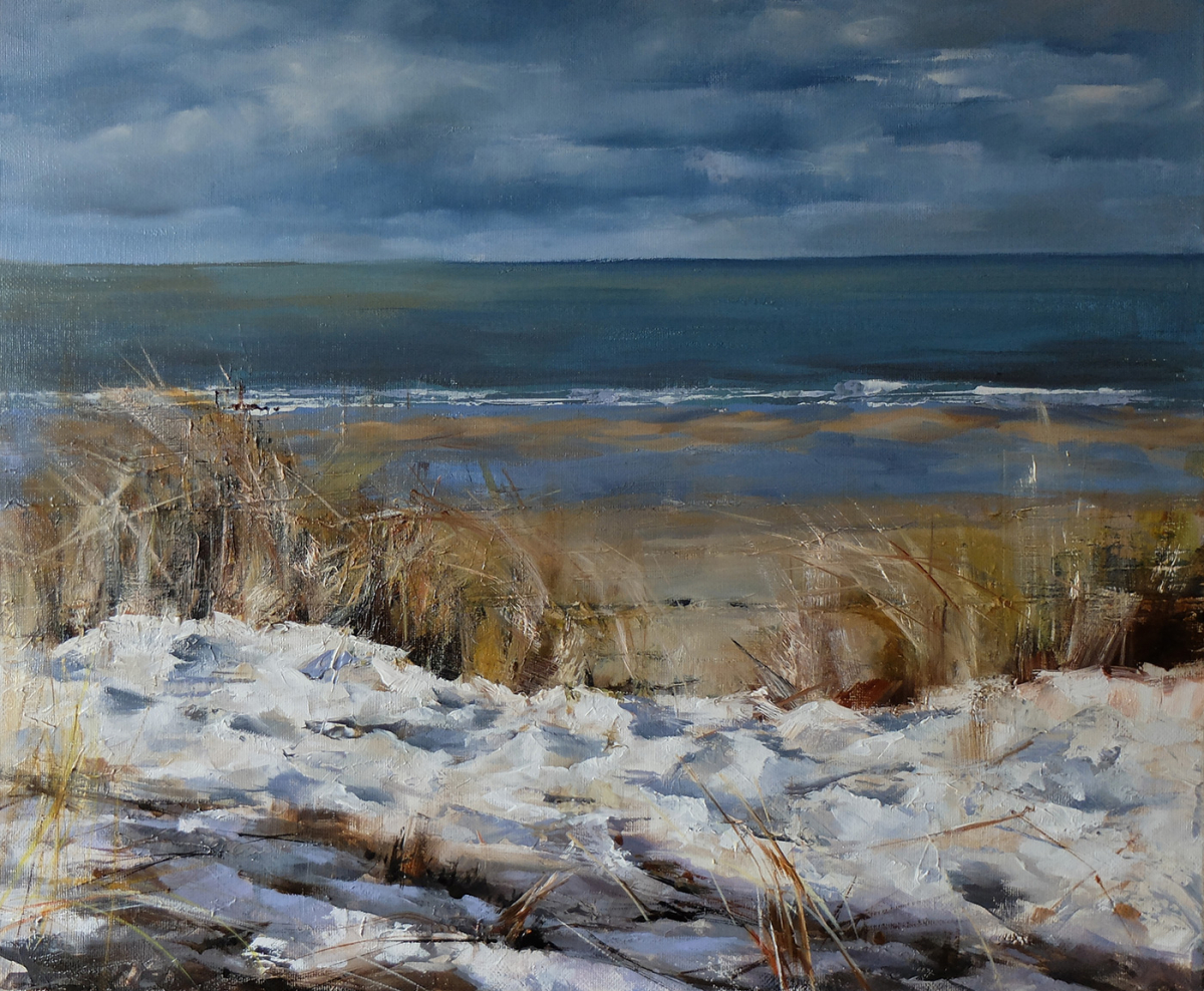 Dune givrée des Salines ou "Bout du Monde". Peinture à l’huile sur toile – 92cm x 73cm © Valérie Le Merrer