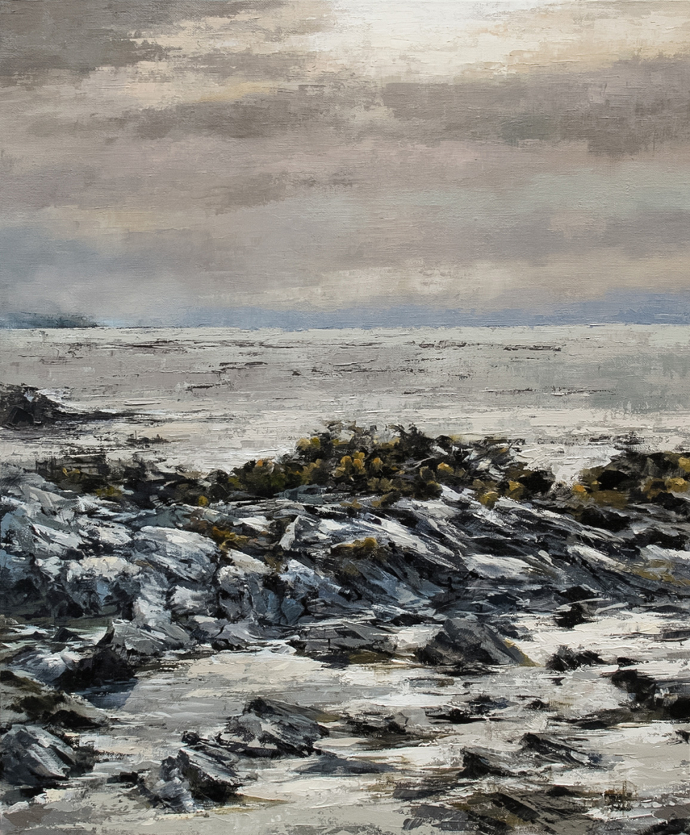 Granit sur l'archipel de Chausey - Temps couvert - Peinture à l'huile sur carton bois - 80cm x 60cm © Valérie Le Merrer