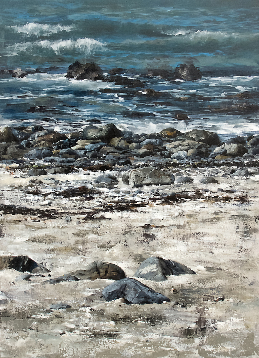 Ressac dans le Nord Cotentin. Grève aux alentours de Port Goury - Huile sur toile - 65cm x 92cm © Valérie Le Merrer
