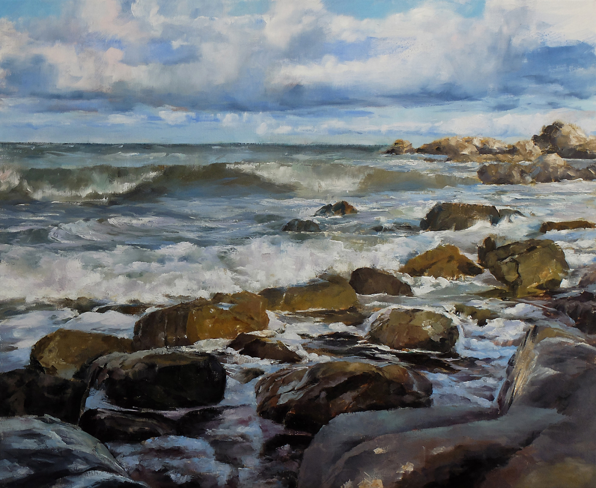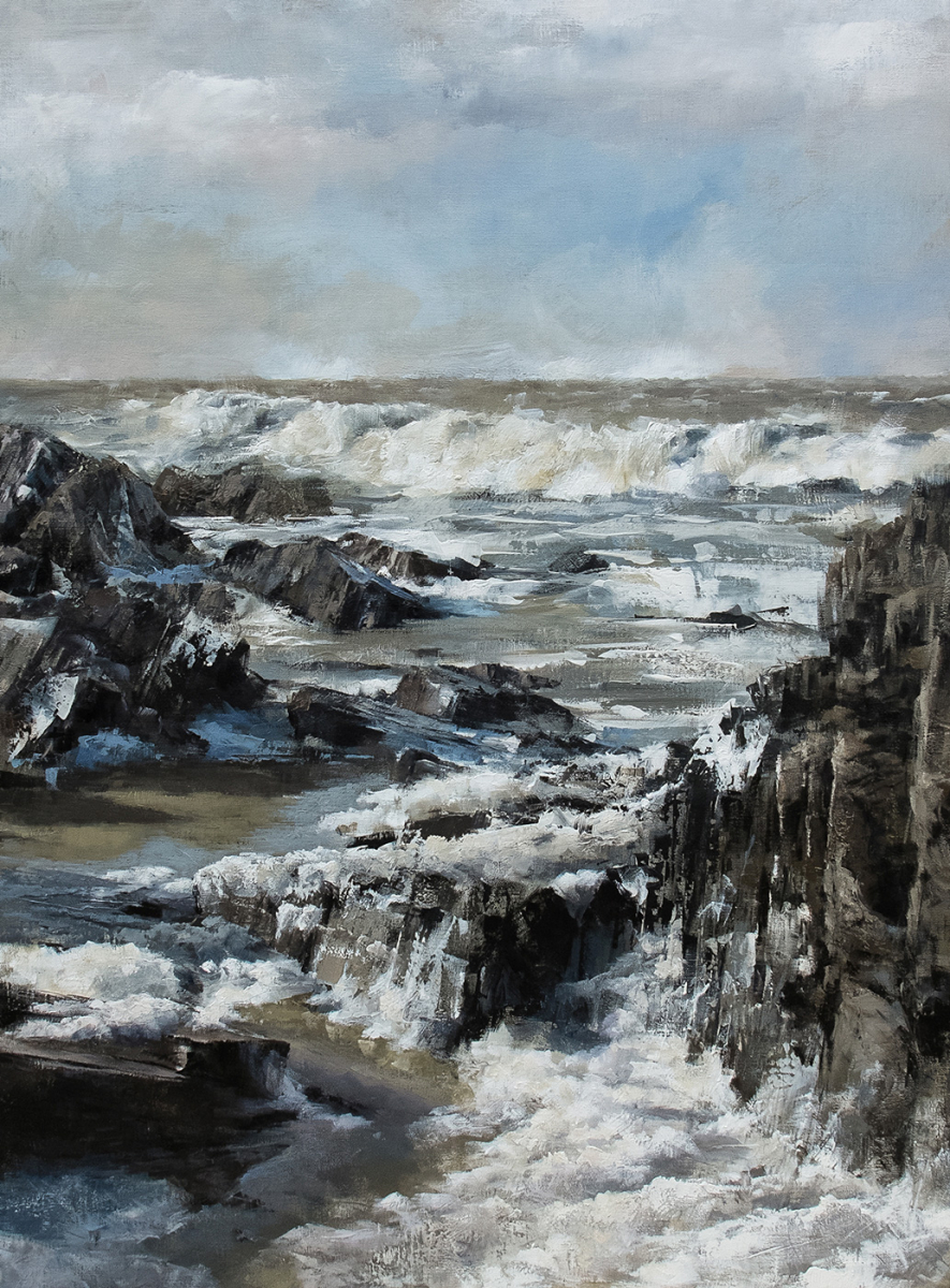 Clapot de la marée montante entre deux rochers. Huile sur toile - 81cm x 65cm © Valérie Le Merrer
